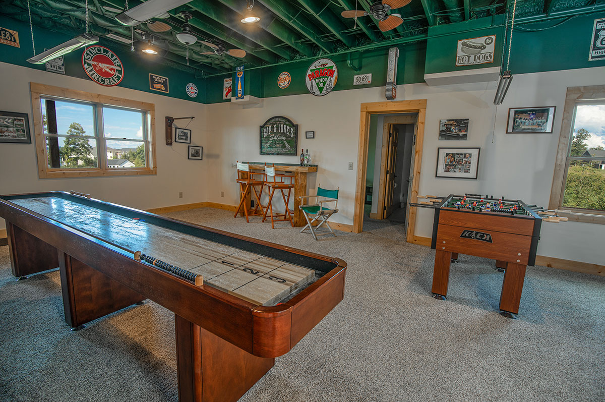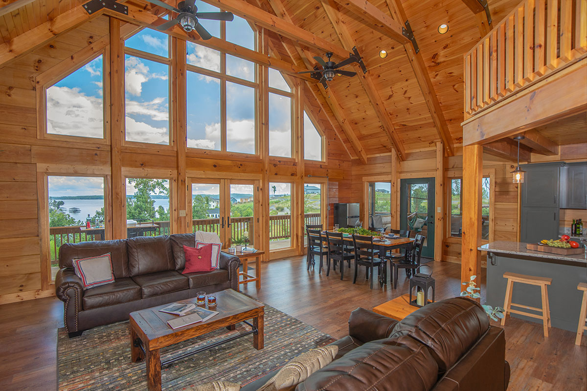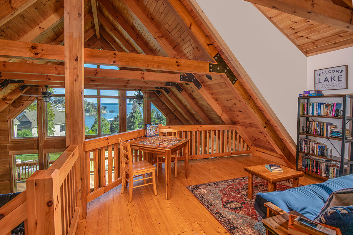Their re-created home, set on the same one-acre lot overlooking picturesque Kentucky Lake, is christened “Lake ’n Logs,” and according to Tim, the home tells the stories of their family. For example, the Route 66 Room pays homage to a two-week road trip the couple once took along the Mother Road. The Fishing Room nods to their love of the lake. “There’s a California Room—a tribute to our West Coast home, and an American Room that proudly displays the Bill of Rights and the Declaration of Independence—a reflection of our deep patriotism,” he notes. Downstairs, another room honors Tim’s 20 years as a U.S. Navy pilot, complete with photos and memorabilia.