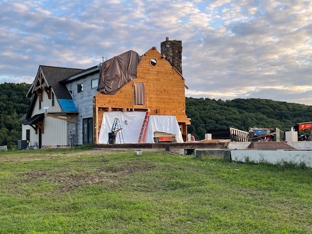 The property itself is a dream location. The homeowners love their incredible view, and the site already had everything in place — a driveway, utilities, and a solid foundation for what’s to come. All the reasons it made sense to stay at this location, demolish the existing log home and build a new timber frame home in its place.