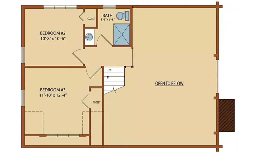 The Clear Creek Timber Frame design features 1,628 total square feet of living space, 3 bedrooms and 2.5 full baths.
