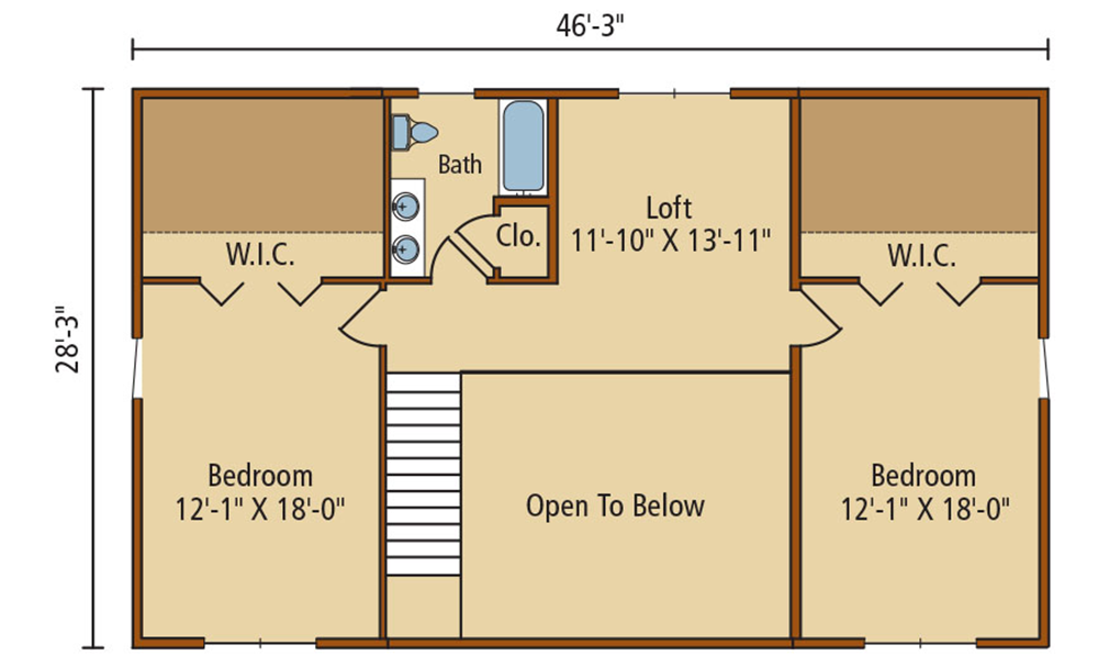The Riverview log home design is illustrated here with our 6×8 D log profile and Mortise & Tenon corner assembly.