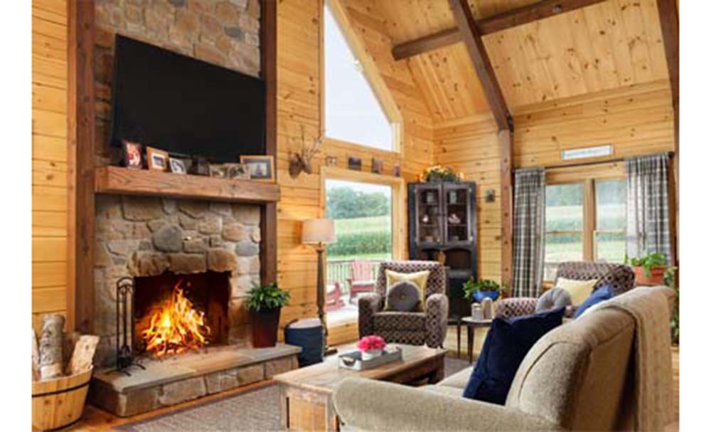 It's easy to see why Log Home Living magazine named this home "Home of the Month." This modified Aspen Hill I log home features an open floor plan, vast picture windows, cathedral ceiling, a first-floor master, and a strong use of natural materials...and colors.