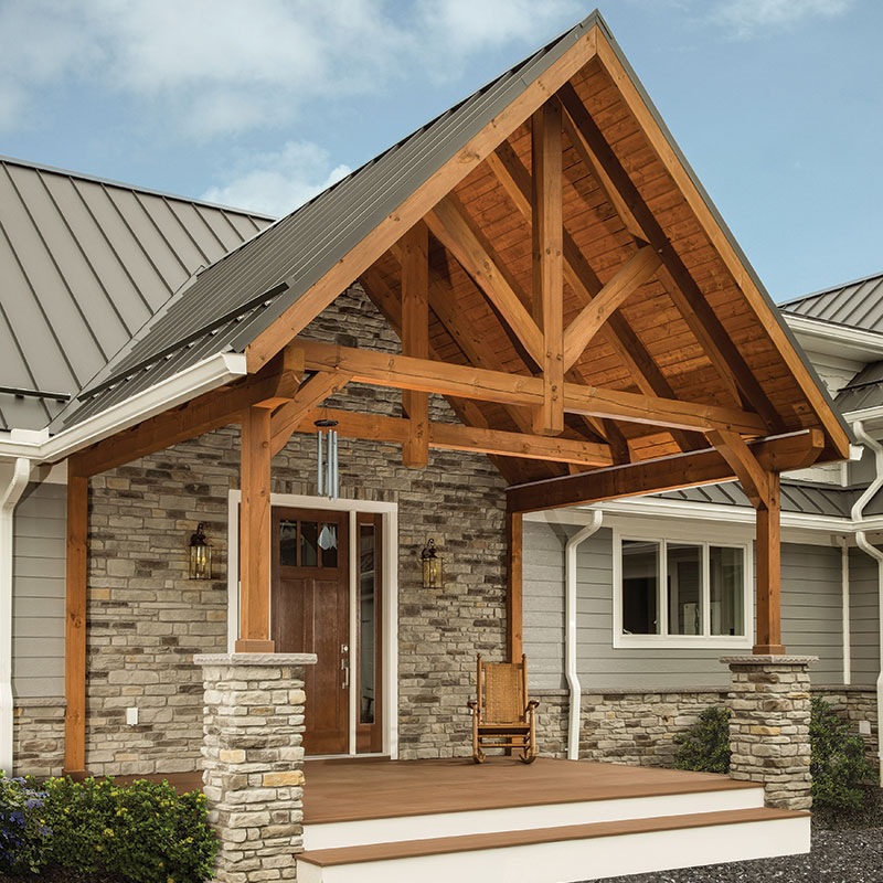 Exterior Timber Elements can turn an ordinary home into extraordinary. The accents can be as minimal as small gable trusses or elaborate porch systems.