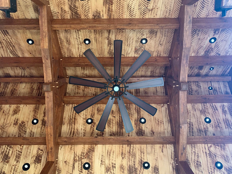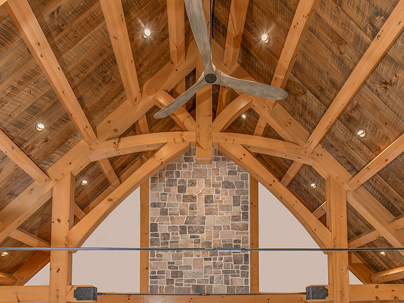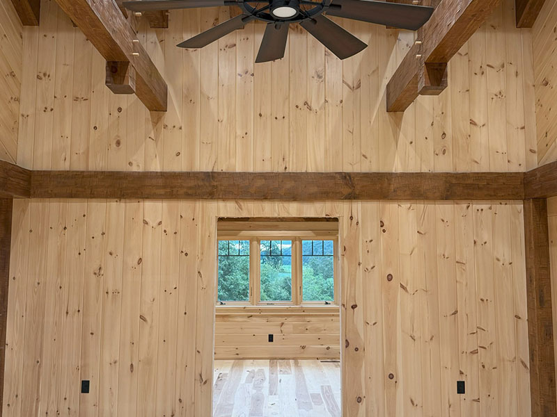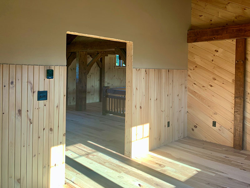 The qualities that make T&G paneling so popular are the same characteristics that make T&G flooring a favored solution. Timberhaven offers 2×6 White Pine T&G for these applications. Our flooring options offer stability, longevity and are easily installed. These products offer a natural golden glow which adds warmth to any room. The flooring can be installed horizontally or vertically and is typically stained or finished with polyurethane. It can also be used for a ceiling finish in timber frame pavilions and porches.