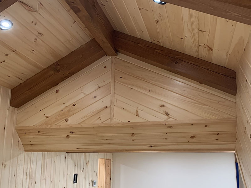 Tongue & Groove (T&G) Paneling is a popular application for log home interiors and architectural accents for conventionally built homes. Timberhaven’s 1×8 White Pine T&G is kiln dried for stability and longevity and is easily installed. It has a natural golden glow which adds warmth to any room. T&G has a lot of character, is budget friendly and is versatile in that it can be installed on your ceiling, walls, floors, around your fireplace or as chair rail. It can be hung vertically, horizontally, or diagonally. It can also be painted, stained or finished with a clear coat of poly.