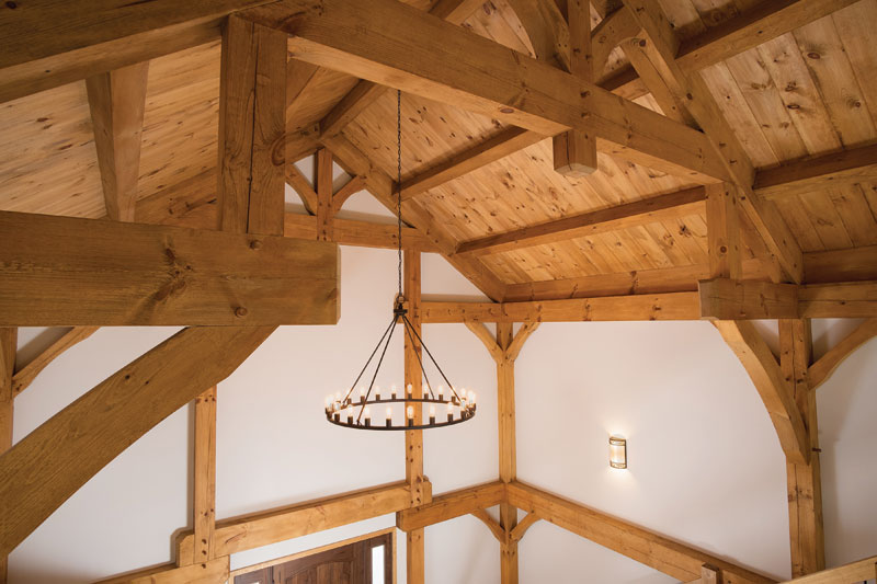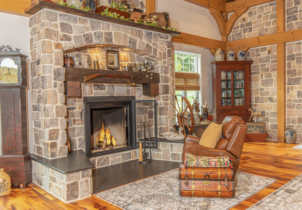 From the moment you walk through the front door of this timber frame home, you are greeted with bold, custom features. Its spacious and cathedral entrance for starters is quite impressive. It leads to heavy timber stairs with wrought-iron railing, and its spacious catwalk yields up-close-and-personal views of the detailed craftsmanship in those timeless hammer trusses. The kitchen, dining and great room flow freely from interior walls, and a massive stone fireplace soars a full two stories. During your virtual tour, don’t miss this home’s impressive outdoor living area…complete with a timber frame pavilion and in-ground pool! It’s quite a splash…